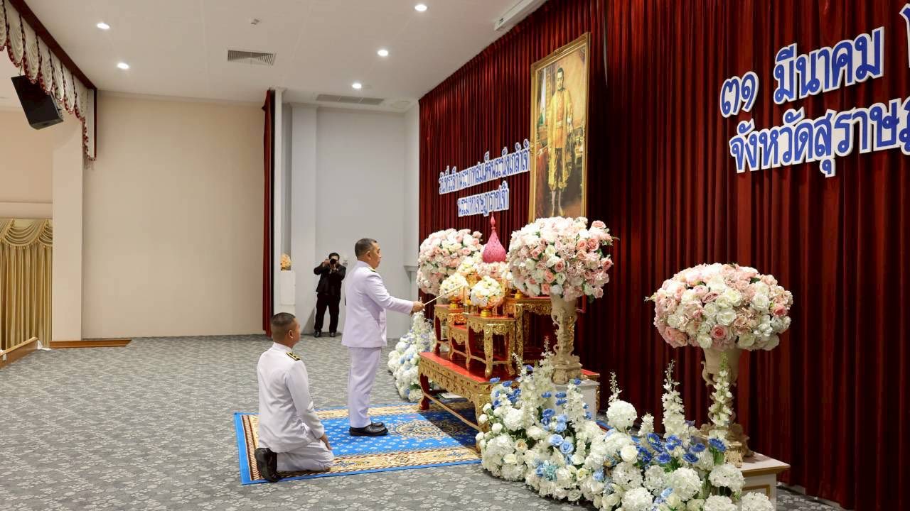 วันที่ 31 มีนาคม 2569 นางสาวจิราภรณ์ เพชรรักษ์ ผู้อำนวยการศูนย์วิทยาศาสตร์การแพทย์ที่ 11 สุราษฎร์ธานี มอบหมายให้ นายชัยยุทธ นทีธร นักฟิสิกส์รังสีชำนาญการ พร้อมด้วยเจ้าหน้าที่ศูนย์ฯ ร่วมพิธีวางพานพุ่มดอกไม้ถวายราชสักการะ เนื่องในวันที่ระลึก "พระบาทสมเด็จพระนั่งเกล้าเจ้าอยู่หัว พระมหาเจษฎาราชเจ้า" ณ อาคารศูนย์กลางการประชุมสัมมนาภาคใต้ตอนบน ศูนย์ราชการจังหวัดสุราษฎร์ธานี โดยมี นายจุมพฏ วรรณฉัตรสิริ ผู้ว่าราชการจังหวัดสุราษฎร์ธานี เป็นประธานในพิธี