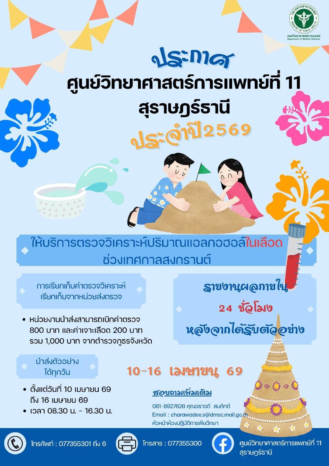 ให้บริการตรวจวิเคราะห์ปริมาณแอลกอออล์ในเลือด ช่วงเทศกาลสงทรานต์ รายงานผล ภายใน 24 ชั่วโมง หลังจากได้รับตัวอย่าง